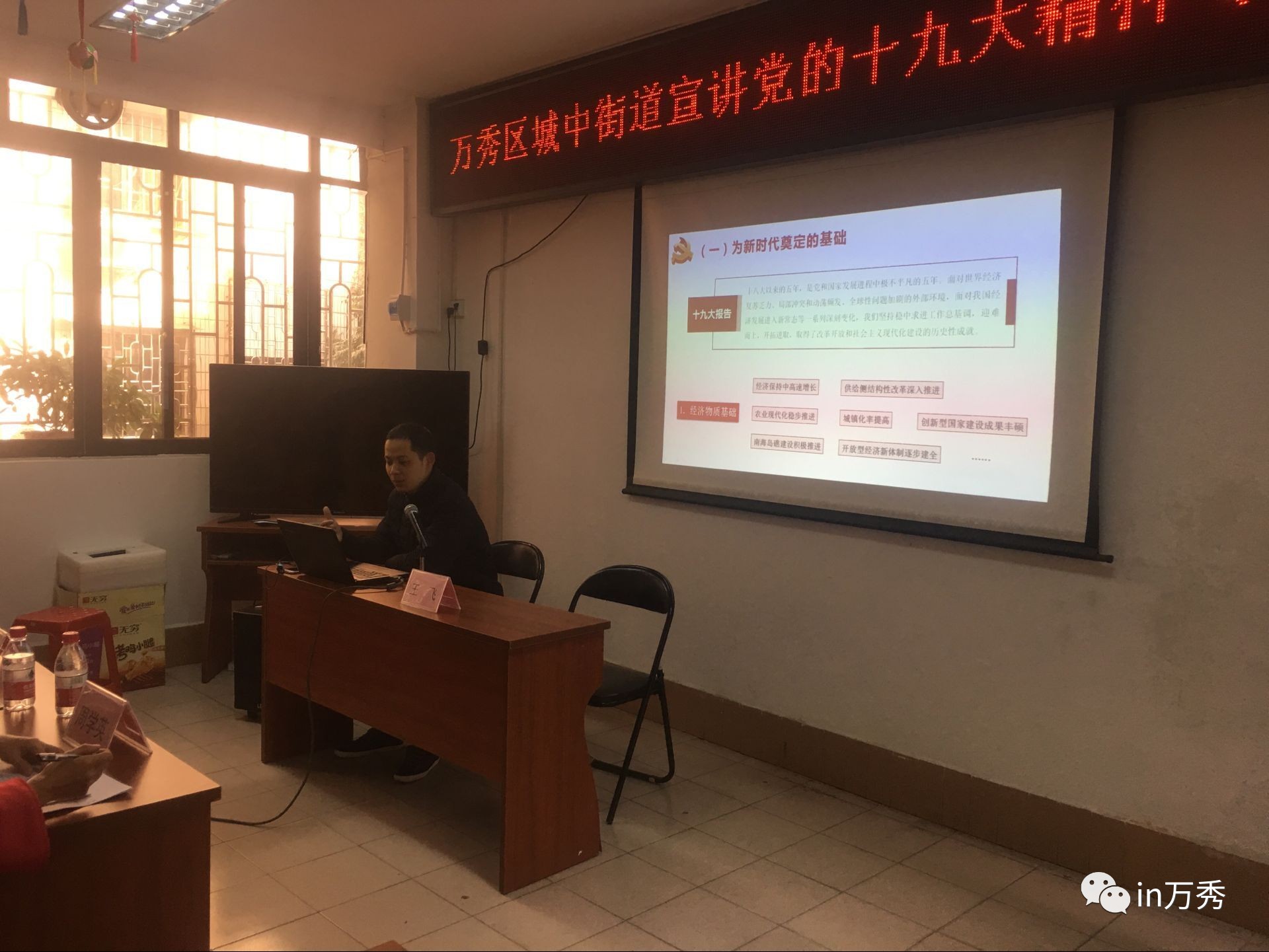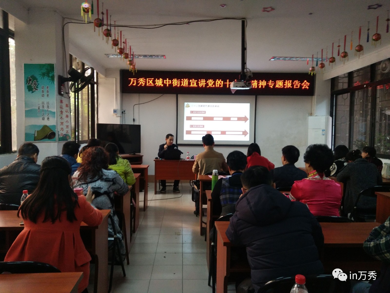为了深入学习宣传贯彻党的十九大精神,万秀区通过外请师资的方式,组织选聘一批政治素质强、理论政策水平高、有演讲能力的理论骨干编入宣讲团,分赴基层开展宣讲活动。12月7日下午,梧州市委党校副教授王飞到城中街道办事处为基层干部群众宣讲党的十九大精神。