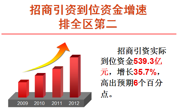 ——招商引资实际到位资金539.3亿元,增长35.7%,高出预期6个百分点,增速排全区第2位;