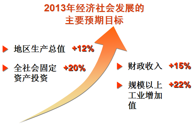 回顾2012年工作,我们深感成绩来之不易,在严峻复杂的经济形势面前,全市人民迎难而上,奋力拼搏,在攻坚克难中保持稳定增长,在苦干实干中推进转型发展。这些成绩的取得,是自治区党委、政府和市委总揽全局、正确领导的结果,是市人大、市政协有效监督、大力支持的结果,是全市广大干部群众真抓实干、艰苦奋斗的结果,是社会各界凝心聚力、和衷共济的结果。在此,我代表市人民政府,向全市人民,向各位人大代表、政协委员,向所有关心、支持和参与梧州建设与发展的同志们、朋友们,表示崇高的敬意和衷心的感谢! 在总结成绩的同时,我们清醒地看到政府工作中还存在不少矛盾和问题:经济发展外部压力持续加大,土地、资金等生产要素和环境资源约束日益趋紧;产业结构有待进一步优化,工业主导产业相对单一的问题仍然突出;生产性商贸物流刚起步,还不能完全适应产业发展需要;社会事业发展相对滞后,民生改善离群众的要求还有差距;政府行政效能有待进一步提高,发展环境有待进一步改善等。对此,我们将采取积极有效措施,切实加以解决。 2013年工作主要目标 2013年,是全面贯彻落实党的十八大精神的开局之年,是我市“五年规划三年完成”的决战之年,也是为全面建成小康社会奠定基础的重要一年。当前,国际经济形势依然错综复杂、充满变数,国内经济发展仍面临不少风险和挑战,不平衡、不协调、不可持续问题依然突出。与此同时,我们更要看到,党的十八大描绘了全面建成小康社会的宏伟蓝图,为我市科学赶超、开放崛起指明了方向;自治区党委、政府高度重视、大力支持我市加快发展,特别是粤桂合作特别试验区上升为两省区发展战略,为我市推动经济持续较快发展提供了更广阔的空间和新的契机;我市正处于工业化、城镇化的快速发展期,经济总量不断扩大,竞争实力日益增强,具备了上水平、上台阶的良好基础;更为重要的是,全市上下人心思进,人民群众对美好生活的新期待增添了我们奋力前行的动力,为我们干事创业营造了浓厚氛围。只要我们坚定信心,抢抓机遇,乘势而上,顽强拼搏,就一定能再创新局面,再铸新辉煌。 根据市委的决策部署,今年政府工作的总体要求是:全面贯彻落实党的十八大精神,以邓小平理论、“三个代表”重要思想、科学发展观为指导,围绕主题主线,坚持稳中求进,以提高经济增长质量和效益为中心,深入实施“东向”战略,走好经济发展“三步棋”,唱响城市建设“三部曲”,以“三年一工程”为抓手,更加突出经济结构战略性调整,更加突出强化改革创新,更加突出保障和改善民生,更加突出维护社会和谐稳定,同步推进新型工业化、信息化、城镇化和农业现代化,保持和扩大经济社会发展的良好势头,加快推进富民强梧新跨越,加快建成西江上游经济带的龙头,为全面建成小康社会奠定坚实基础。 全年经济社会发展的主要预期目标是:地区生产总值增长12%,力争15%;全社会固定资产投资增长20%,力争25%;财政收入增长15%,力争20%;规模以上工业增加值增长22%;