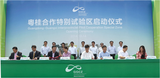 同时,我们还推动促成了一些事关全局和长远发展的大事、要事: 国家批复《珠江—西江经济带发展规划》,粤桂合作特别试验区建设被纳入规划上升到国家战略层面,粤桂两省(区)联合全面启动试验区建设;