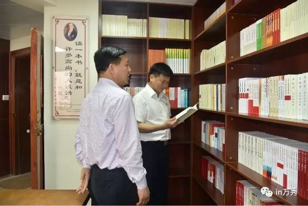 蓝盛新强调,万秀区要按照学习型机关建设的要求,利用好书吧这个平台,认真开展形式多样的读书活动,全面提高公共文化服务水平,满足广大干部职工的精神文化需求。要在现有的基础上,整合资源,提高书吧书籍借阅效率,及时向干部推荐优秀刊物。要创新阅读模式,通过开展“我有好书推荐”等丰富多彩的读书分享活动,以读书会带动读书活动,让读书活动常态化、制度化、有效化,营造出浓厚的学习氛围。广大党员干部要树立终身学习的理念,想读书、勤读书、会读书、读好书,真正做到学有所思、学有所用、学有所获。
