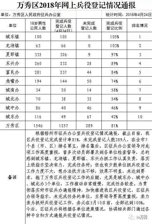 | 万秀区2018年网上兵役登记情况通报 |