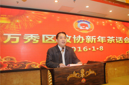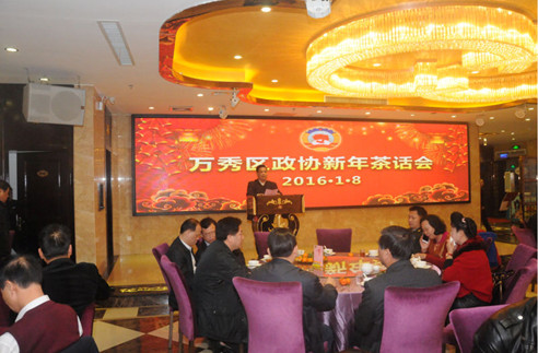 2016年1月8日上午,万秀区政协举行2016年新年茶话会,万秀区各界人士齐聚一堂,叙有情、话发展、喜迎新年。茶话会由区政协主席严锦雄主持,万秀区委副书记、区长罗伟雄出席茶话会并作讲话,罗伟雄区长代表万秀区党委、人大、政府、政协四家班子向各位政协委员,各民主党派、工商联、人民团体和无党派爱国人士,向所有关心支持万秀区经济社会发展的各界人士,致以诚挚地祝福和衷心的感谢! 罗伟雄区长说:2015年在市委、市政府的正确领导下,我区政协团结全区各族人民,深入贯彻落实习近平总书记系列重要讲话精神,以“四个全面”战略布局为统领,着力稳增长、调结构、惠民生、保稳定、抓党建、强作风等各项工作,全区经济建设、政治建设、文化建设、社会建设、生态文明建设和党的建设取得了新成绩,各项工作达到了预期目标,为“十二五”圆满收官和“十三五”发展开好局、起好步奠定了坚实基础。 罗伟雄区长也说:2016年是“十三五”开局之年。万秀区“十三五”规划,描绘了未来五年万秀区发展的蓝图,提出了今后五年万秀区经济社会发展的主要目标。人民政协作为最广泛的爱国统一战线组织,是党和政府联系人民群众的桥梁和纽带,是广泛凝聚各方智慧力量的重要实现形式,实现“十三五”的良好开局和经济社会发展的各项目标,离不开区政协组织、政协委员和各界人士的理解和支持,离不开全区各族人民的努力奋斗。希望区政协、广大政协委员和各界人士,深入贯彻习近平总书记的重要讲话精神,以及各级党委的决策部署,准确把握人民政协的性质定位,进一步增强政治意识、大局意识、服务意识,一如既往地围绕中心、服务大局、主动作为,多做建言献策、共谋发展的工作,多做凝聚人心、团结鼓劲工作,多做协调关系、化解矛盾的工作,多做联系群众、维护稳定的工作,围绕我区“十三五”的目标和任务,凝心聚力、善谋良策、多做实事,为万秀区发展做出新的更大贡献。