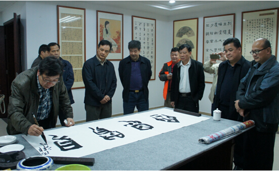其间,委员艺术家即席挥毫,通过书画作品表达对粤桂合作和文化发展的美好愿望和信心,一再把会议气氛推向高潮。 (廖锡玮)